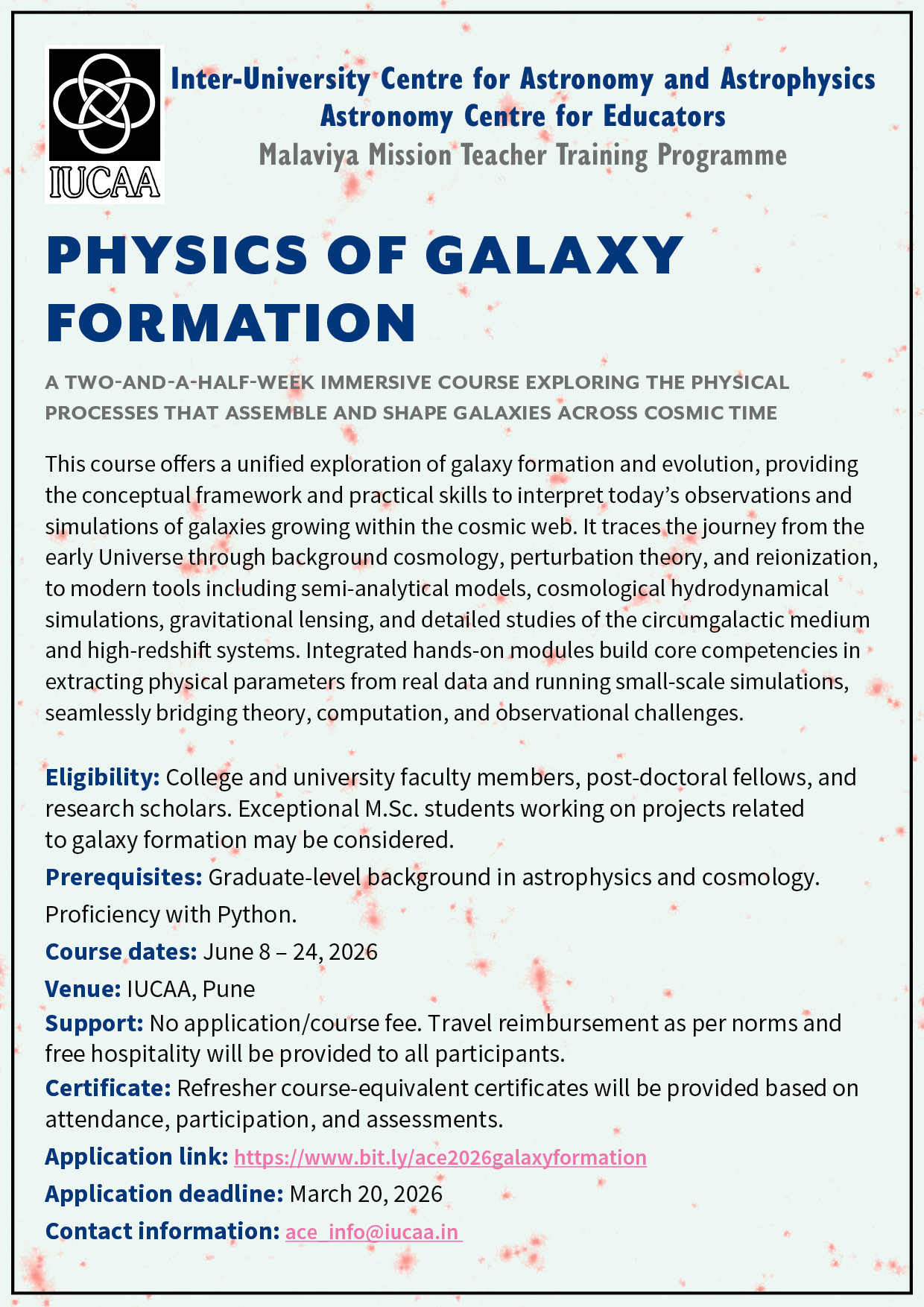 Its activities contribute towards one of the core objectives of IUCAA — improving pedagogic processes and enhancing research activity in astronomy and astrophysics in institutions of higher education across the country. The TLC has since been renamed as the Malaviya Mission Teacher Training Centre (MMTTC) by the University Grants Commission in 2023.
